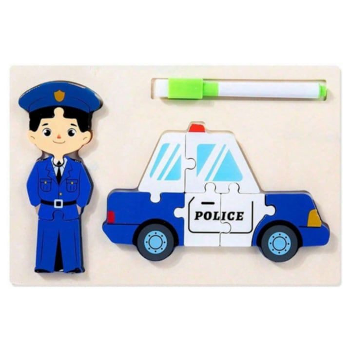 Drevené policajné puzzle s kresliacou tabuľkou – rozvíjajúca hračka 2 v 1