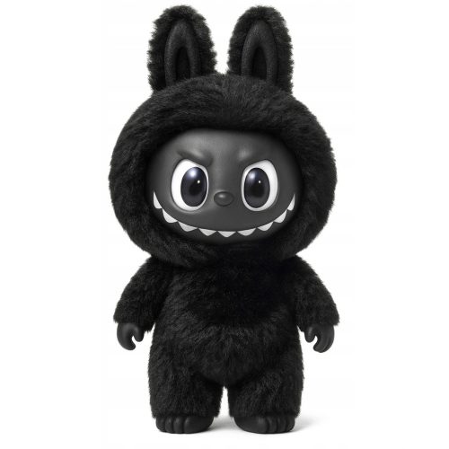 Čierna plyšová figúrka Labubu je jedinečná a originálna zberateľská postavička. Má mäkký čierny kožúšok, výrazné veľké oči a usmievavé zúbky, ktoré jej dodávajú hravý a charakteristický vzhľad.