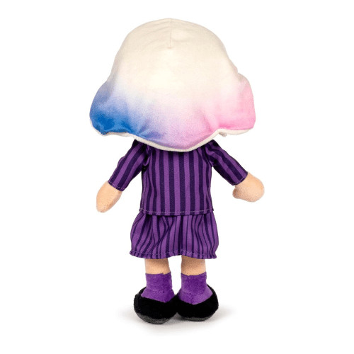 Enid, veselá a farebná postava zo seriálu Wednesday, je teraz dostupná aj ako plyšová hračka. Jej jedinečný vzhľad dotvára výrazné farebné prechodové vlasy a pruhované oblečenie.