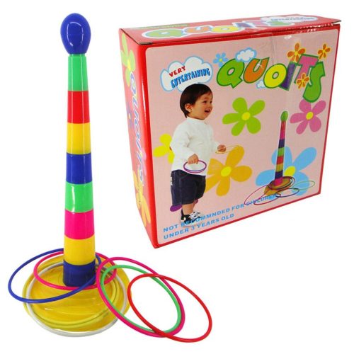 Zábavná hra s hádzaním krúžkov, ktorá rozvíja detskú zručnosť a koncentráciu. Úloha je jednoduchá: farebné krúžky treba hádzať na tyč, čo predstavuje hravú výzvu pre menšie aj väčšie deti.