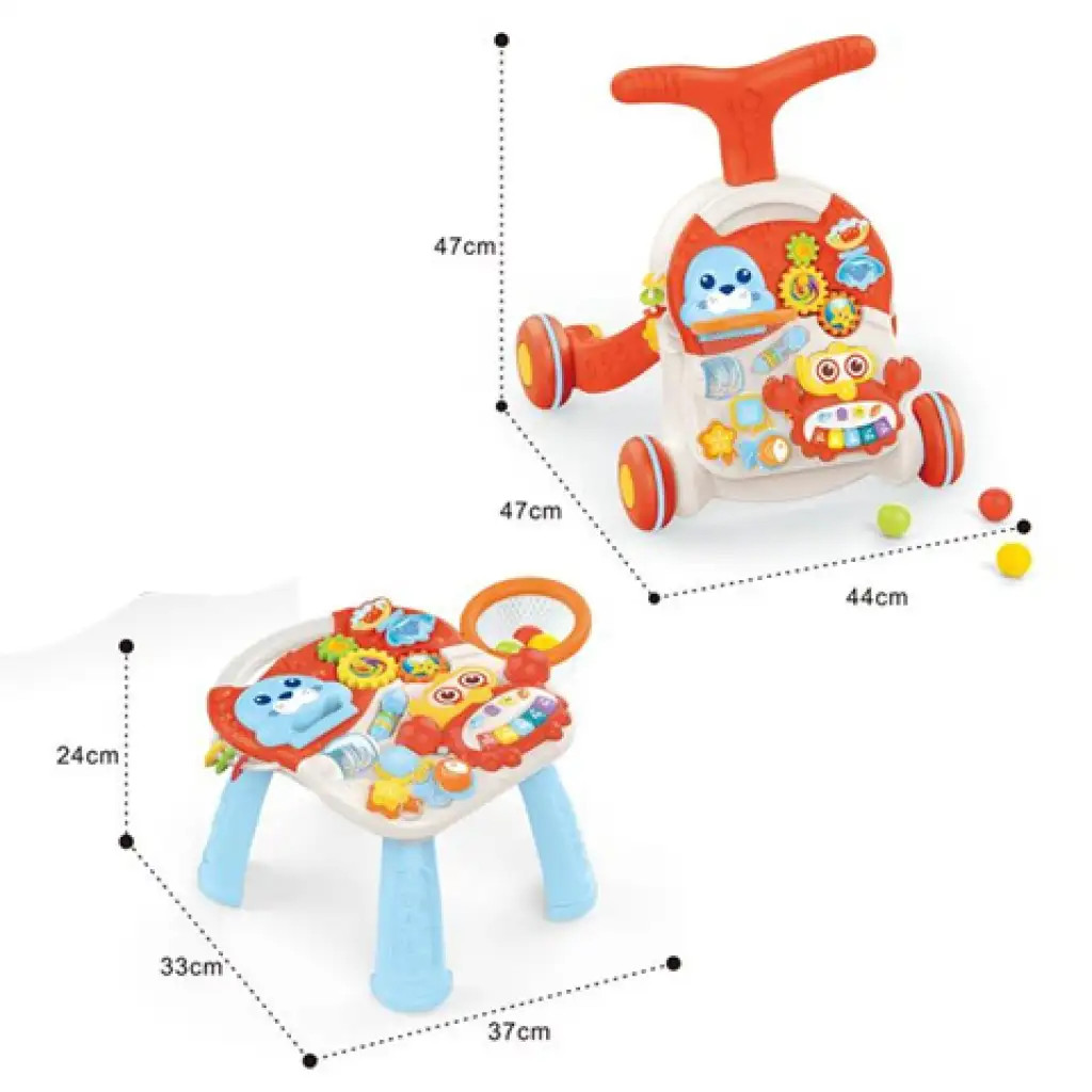 Toto chodítko a aktivitný stolík 2 v 1 je ideálnou hračkou pre malé deti už od 12 mesiacov. Pomáha pri učení sa chôdze a zároveň ponúka množstvo zábavných a rozvíjajúcich prvkov.