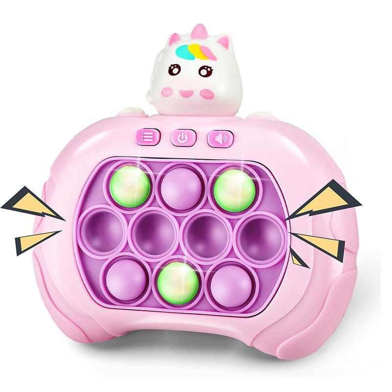 Zábavná zručnostná hra v tvare jednorožca typu Pop It, ktorá rozvíja reakčný čas a koncentráciu. Počas hry sa tlačidlá na rôznych miestach rozsvietia a hráč musí rýchlo stlačiť to tlačidlo, ktoré svieti.